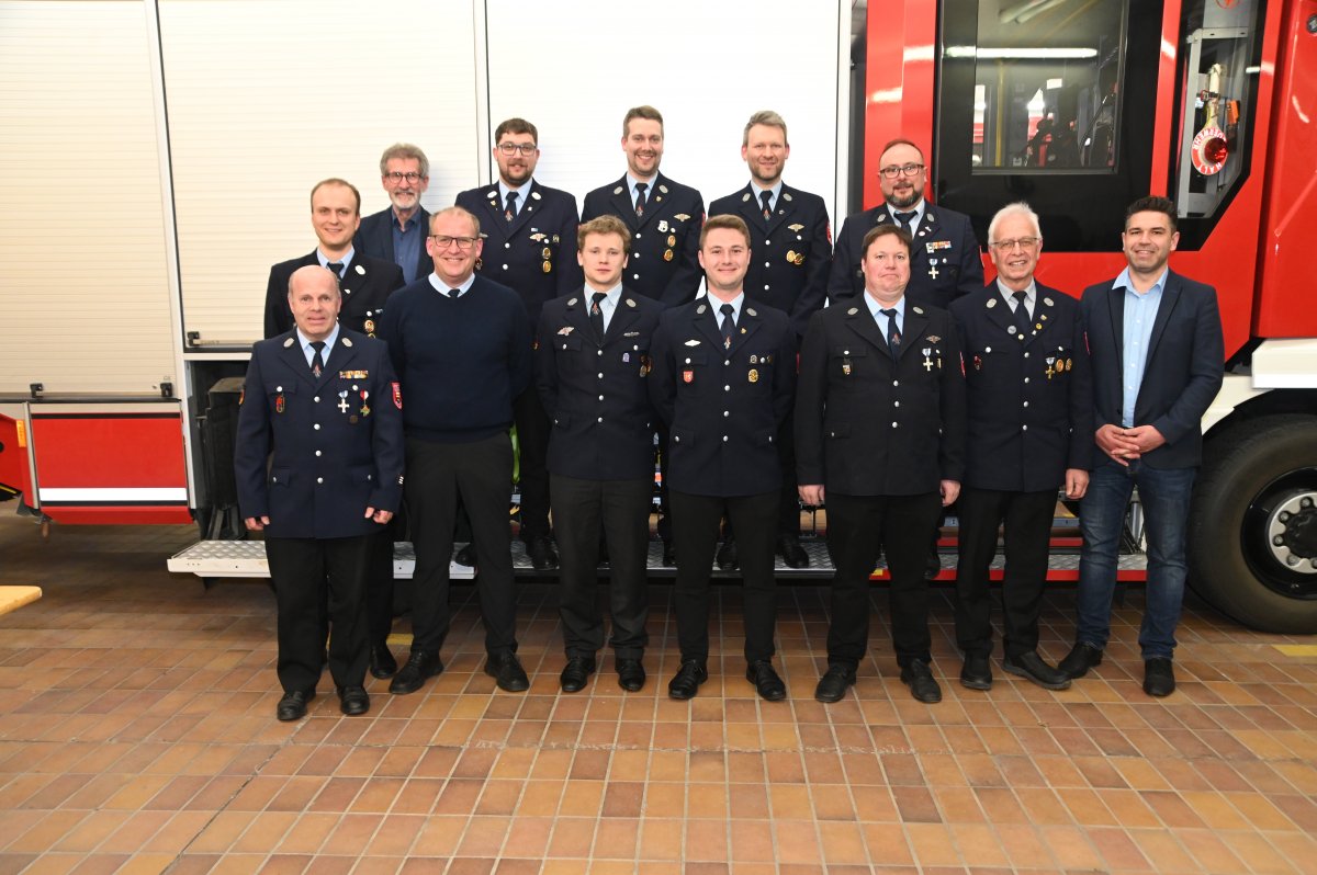 Die Feuerwehr konnte zahlreiche Gäste und Ehrengäste begrüßen. Den verstorbenen Mitgliederinnen und Mitgliedern wurde mit einer Schweigeminute gedacht.