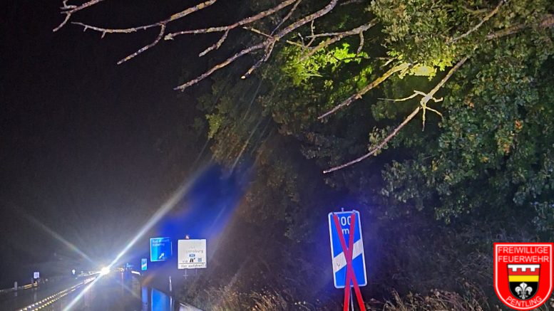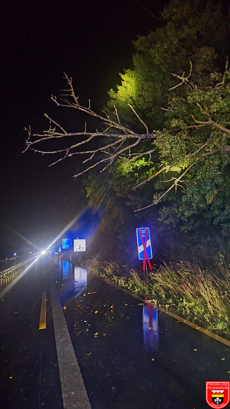 Um 23:14 wurden wir durch die Ils zu einem Baum gerufen, der in die Fahrbahn der Autobahn ragte. Um diesen entfernen zu können, mussten wir die Autobahn kurz voll sperren. Nach entfernen des Baumes und Reinigung der Fahrbahn konnten wir schnell wieder einrücken.