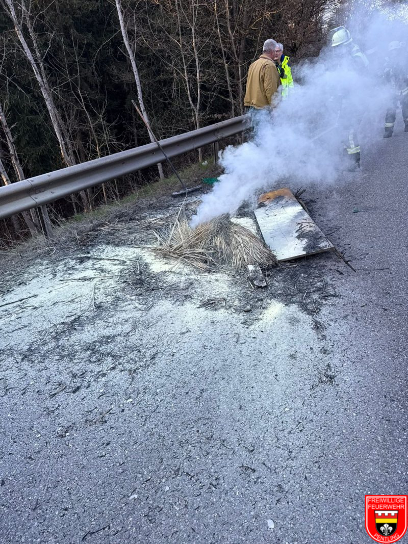 Wir wurden zusammen mit mehreren Feuerwehren aus dem Gemeindegebiet zu einem PKW Brand alarmiert. Nach der ersten Erkundung konnten wir feststellen, das lediglich die Beladung des Anhängers brannte, welche wir zügig mit unserem Schnellangriff ablöschen konnten.